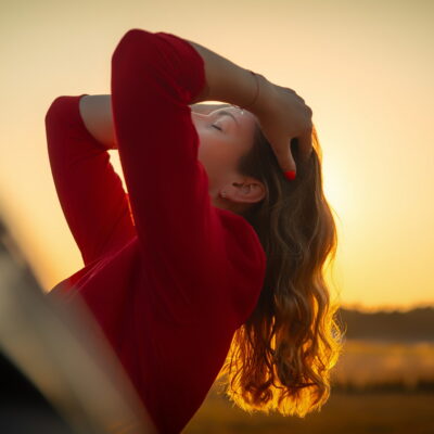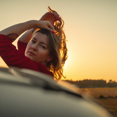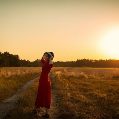 Spójrz tylko, czerwień to kolor na każdą okazję. To kolor siły, odwagi, energii ale też miłości. I właśnie w tej czerwonej sukience, przy ostatnich promieniach letniego słońca Agnieszka wygląda jak ogień 💃🔥 To był sam środek lata i cudowny zachód słońca. Jakże ja za tym już tęsknię…. I za spotkaniami z Wami w takich magicznych okolicznościach ❤️ Bo fotografia kobieca ma zatrzymywać takie właśnie chwile, emocje, charakter, czułość, tęsknotę… Chciałabym, żeby ta sesja była dowodem, że każda z nas może być tak zachwycająca jak moja modelka, zwłaszcza w czerwieni, która – tak jak my, kobiety- potrafi być i mocna i delikatna 🔴