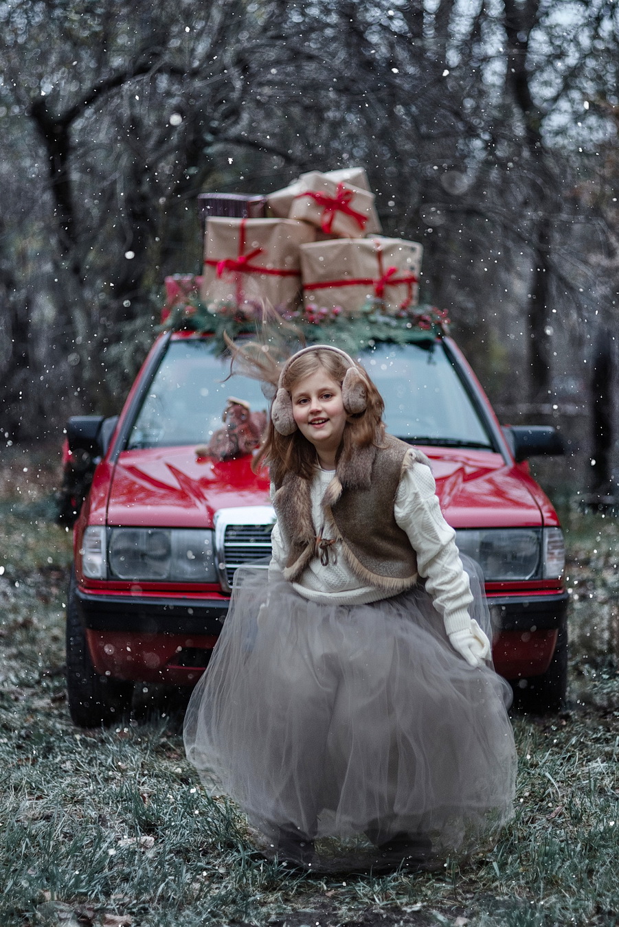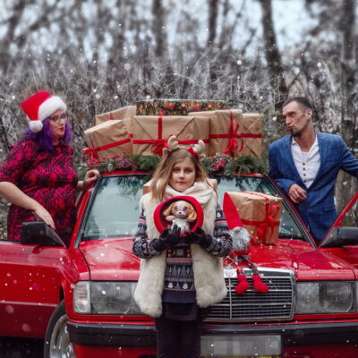 Święta… Zawsze wydawało mi się, że sesje świąteczne trzeba zrobić w studio stosownie je dekorując. Że w ciepłym pomieszczeniu łatwiej wywołać odpowiedni nastrój. Kiedy jednak zobaczyłam ten samochód – samochód mojej młodości, w idealnym stanie, od razu pomyślałam, że oprócz radości z codziennego użytkowania, będzie idealnie nadawał się do sesji, szczególnie świątecznych.Imię nadała mu moja ukochana Lilia: Mary, bo Mercedes to przecież dziewczyna, babciu 😍 Zimowo-świąteczne sesje plenerowe, też okazały się strzałem w 🎯 Robi się je szybko, żeby nikt nie zmarzł. Na wszelki wypadek pod ręką gorąca herbatka. Dzieci cudownie się bawią i o wyjątkowy nastrój nie jest trudno 🤩 Zapraszamy Was – ja i Mary – w przyszłym sezonie na sesje z okazji Świąt 🎅🎄